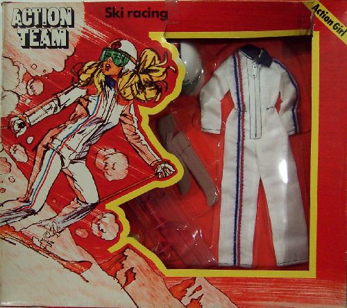 Based on the GI Joe skiing themes, but harkening back more to the Palitoy Action Man sporting themes. Note the helmet - it is really the Scramble Pilot helmet! Skis and poles are under the packaging (I do like the socks ... interesting accessory considering you would never see them!) |